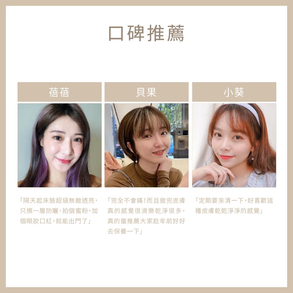 | 1.施作前1周避免使用酸類藥膏及保養品(ex:酸、果酸、水楊酸...等) |